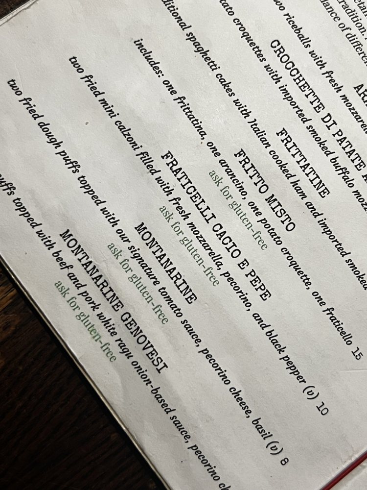 Every pizza in our menu (except for the fried ones) can be made gluten-free for a $ addition. For our gluten free foods, we chose FioreGlut from Mulino Caputo, a gluten free flour specifically formulated for people intolerant to gluten. Its a blend of gluten free wheat starch, dextrose, maize starch, buckwheat flour, rice starch, psyllium seed fibre, thickener: guar; flavoring. Please note: Fioreglut meets the Food and Drug Administration (FDA) requirements for gluten free foods