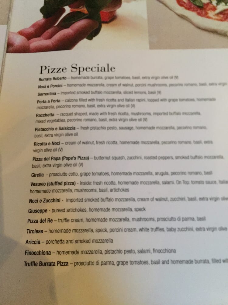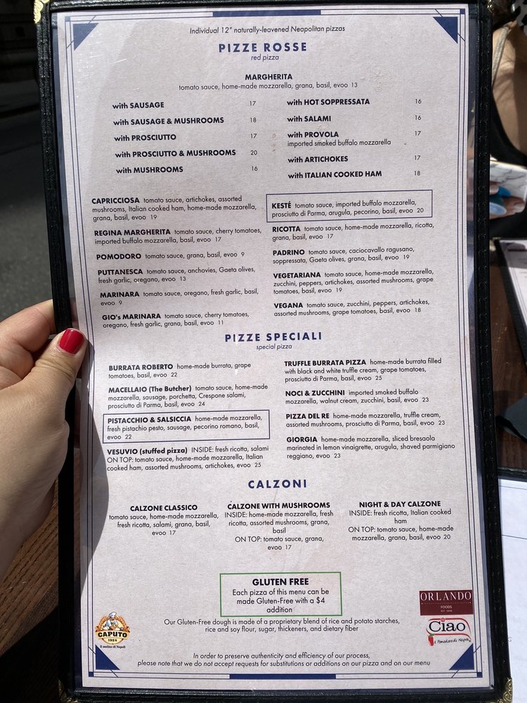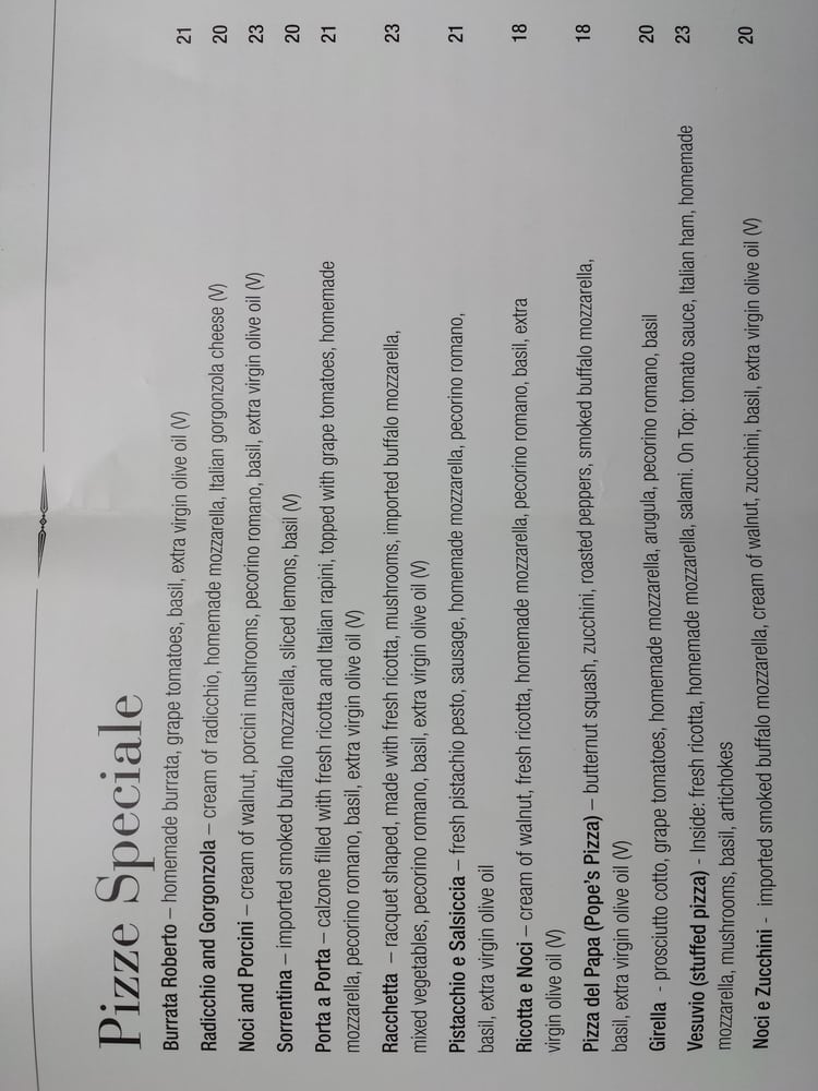 Tomato sauce, imported buffalo mozzarella, prosciutto di Parma, arugula, shaved pecorino, basil, evoo