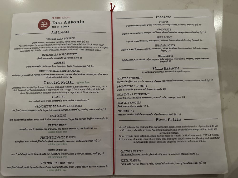 Introducing Don Antonio, a renowned pizza restaurant in New York, offering a wide range of Italian dishes in a casual and inviting atmosphere. Located at 309 W 50th St, Don Antonio boasts a menu with options for everyone, including vegan and vegetarian choices. The authentic Neapolitan style pizzas, cooked in a wood-fired stone oven, are a highlight, with favorites like the classic Margherita and innovative Montanara receiving rave reviews. Customers praise the excellent service and warm ambiance, making it a great spot for lunch or dinner. Don Antonio also offers a variety of amenities such as outdoor seating, a full bar, happy hour specials, and even pool tables. With its dedication to quality and customer satisfaction, Don Antonio is a must-visit for pizza lovers in the city.