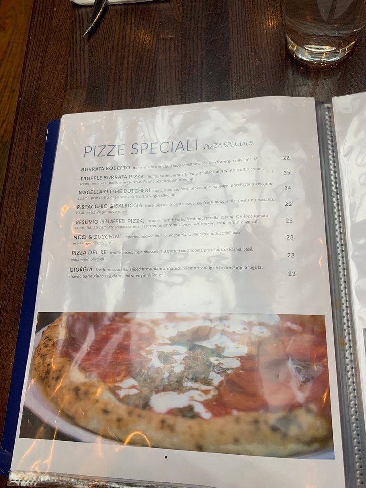 fresh mozzarella, fresh pistachio pesto, sausage, pecorino romano, basil, evoo